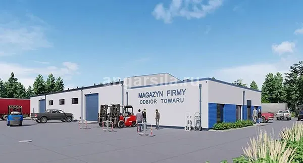 Проект отапливаемого 2 этажного склада с офисом из металлоконструкций на 3 69,2 м3 / 645,9 м2 с офисом в Юрибее
